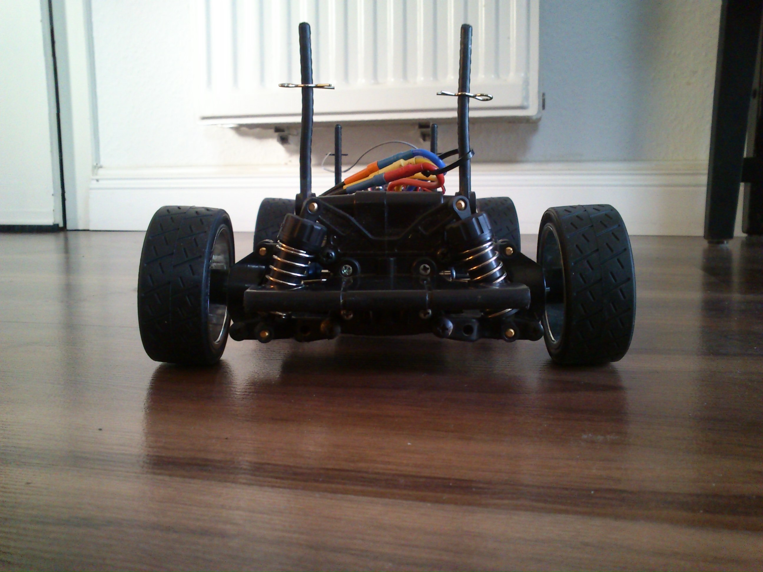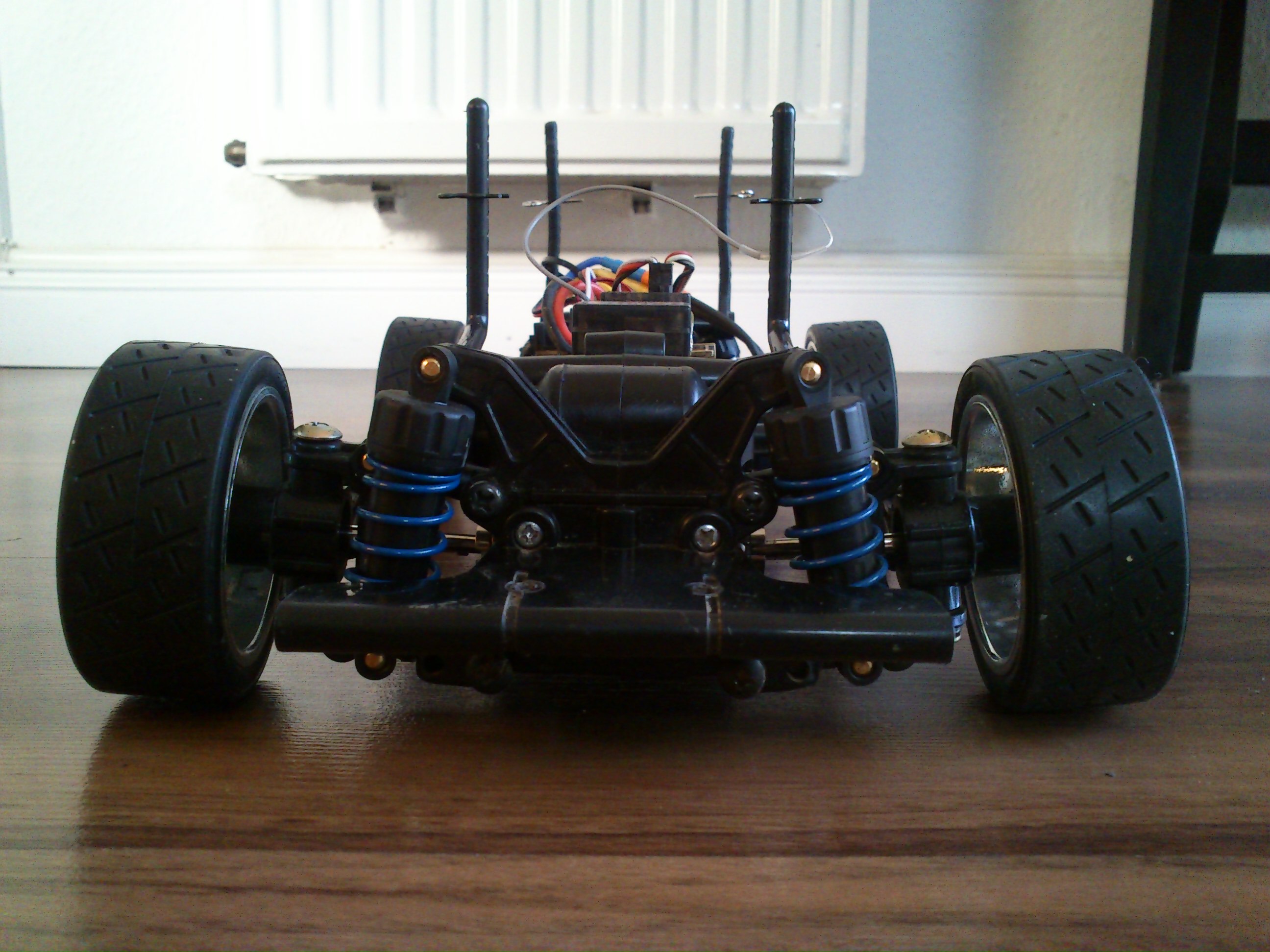 - Aluminium Oil Shocks (white springs) REAR <– we’re weary of the possible results!